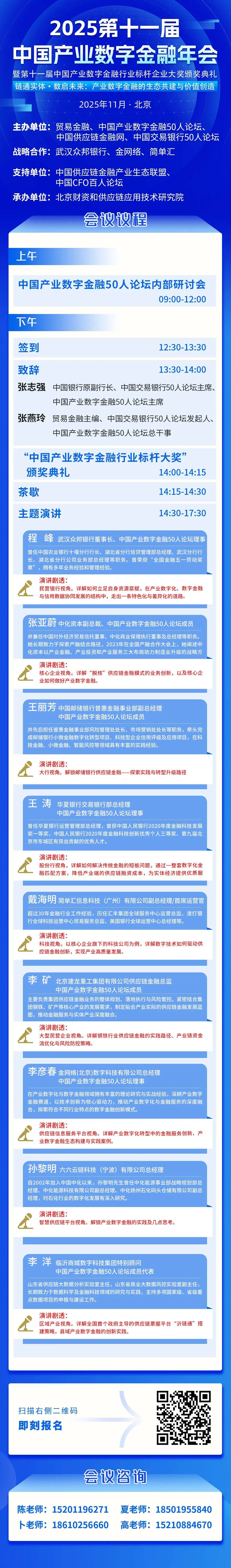 当下,新一轮科技革命与产业变革加速推进,产业数字金融作为促进经济增长的新引擎,历经传统产业金融1.0、供应链金融2.0到数字金融3.0阶段,已形成覆盖全产业链的生态服务体系。然而,其发展仍面临技术支撑不足、监管模式滞后等挑战。为此,2025第十一届中国产业数字金融年会将于11月13日在北京举办,聚焦产业数字化与金融创新融合趋势,汇聚政府、企业、金融机构等各方力量,探讨行业痛点与解决方案,推动构建良性金融生态,助力产业链协同发展。