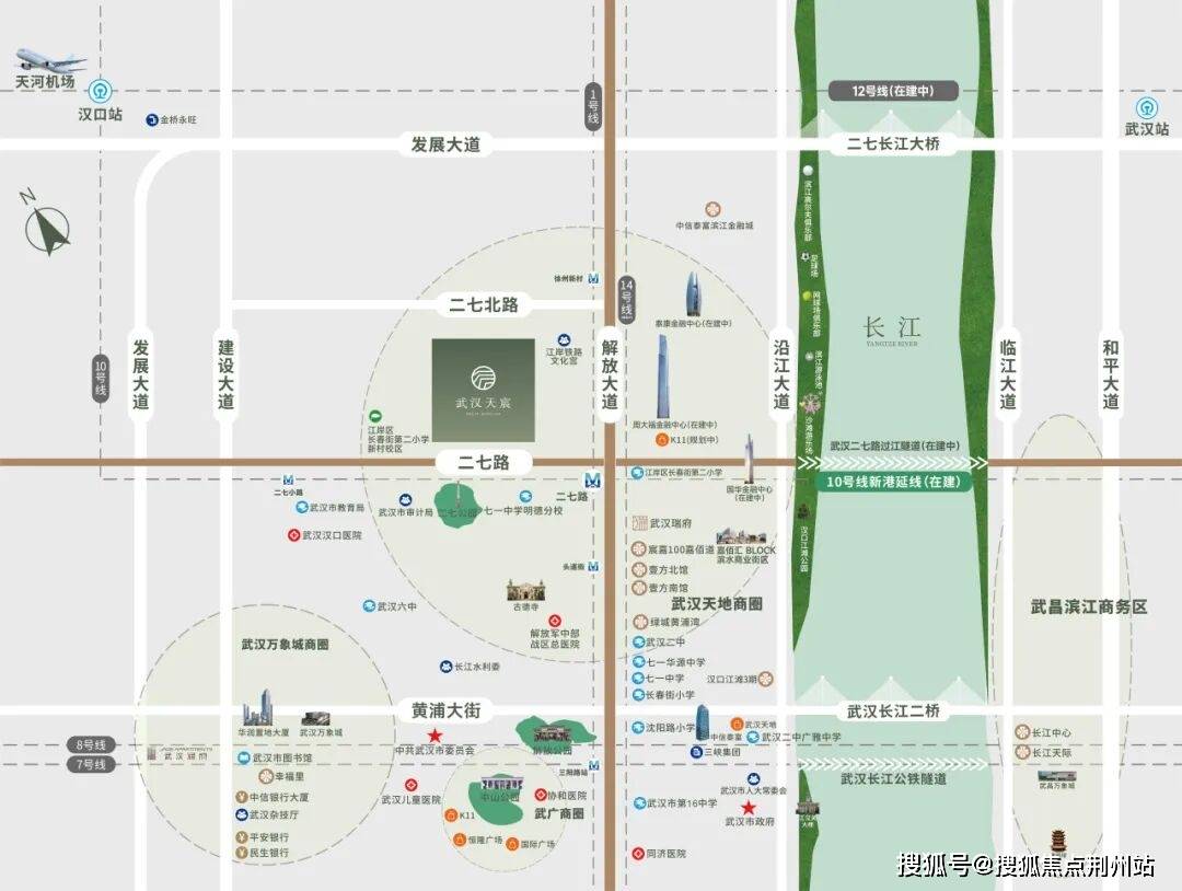 •举步近享汉口江滩公园,全长约7.5公里超级绿意长卷,领潮世界的滨江生活体验,二七滨江下沉式中央公园(在建中)、二七公园、解放公园、中山公园多园环绕,占位城市绿洲黄金三角,近享同频国际的公园生活方式。