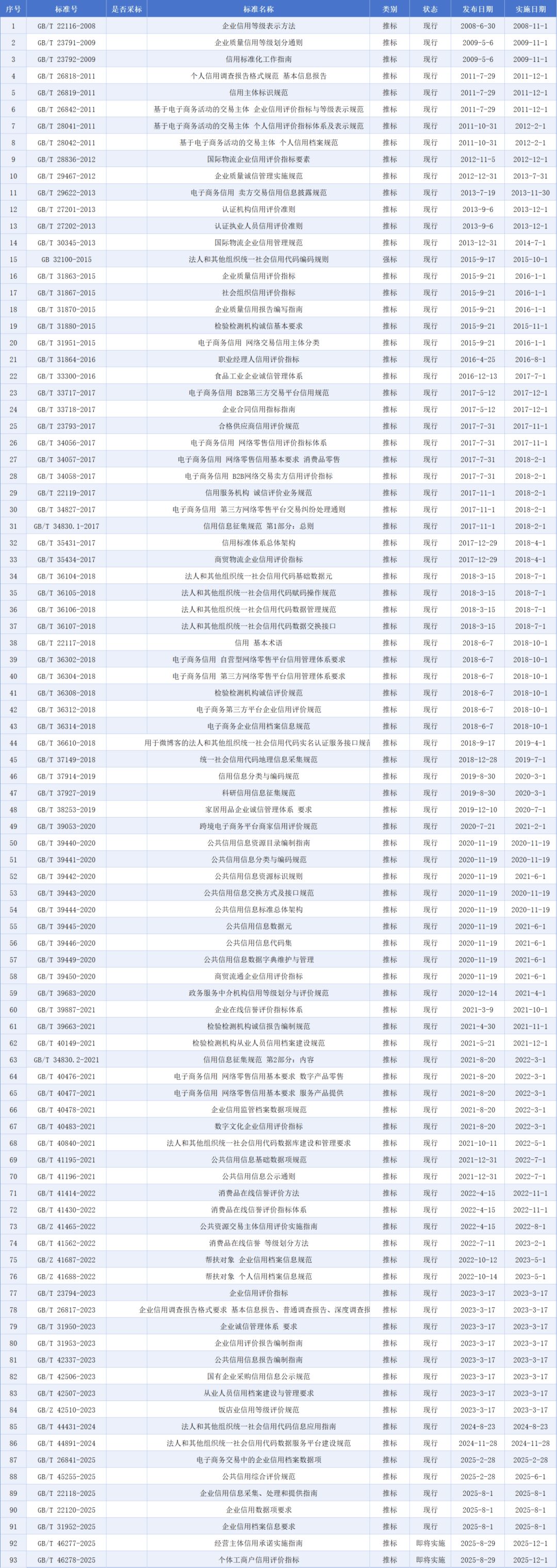 2.全国社会信用标准化技术委员会质量信用分技术委员会(SAC/TC470/SC1),2008年成立;